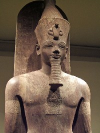 Roi constructeur au goût raffiné, l'architecte Amenhotep lui érigea son palais de Thèbes. Grâce à l'influence de sa Grande Epouse Royale Tiyi, il se distingua par son Action en faveur des arts, du luxe et du raffinement. Aménophis III, pharaon de 1417 à 1379 av. J.-C., est l'un des grands Souverains bâtisseurs de l'Égypte. Sous son règne, qui coïncide avec une Longue période de paix, l'art atteint une splendeur inouïe, dont témoignent Les colosses de Memnon, vestiges du temple funéraire de Thèbes. |