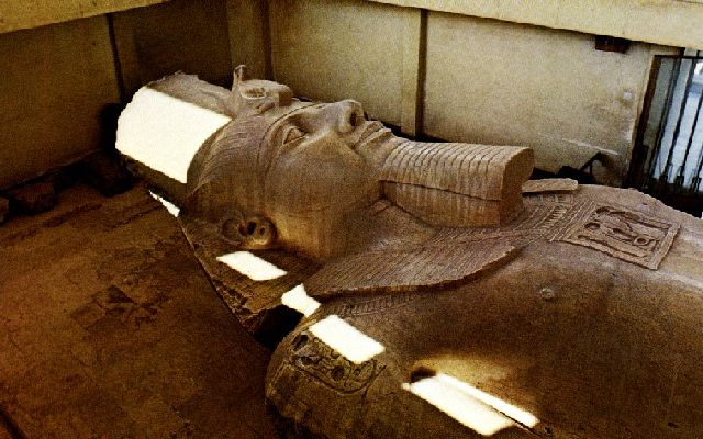 Statue de 13 m de haut à l'origine qui se trouvait devant le temple de Ptah à memphis. Cette statue se trouve aujourd'hui place de la Gare au Caire. |